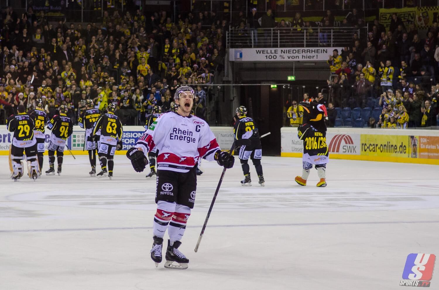 Im ersten Drittel dominierten die Gastgeber die Partie. Daniel Pietta legte früh mit dem 1:0 vor und es schien auch in der Folge ein guter Einstand des neuen Trainers zu werden. Bis zur 56. Minute hielt die Verteidigung der Krefelder stand und Köln nahm sich viele Möglichkeiten durch unnötige Strafen.