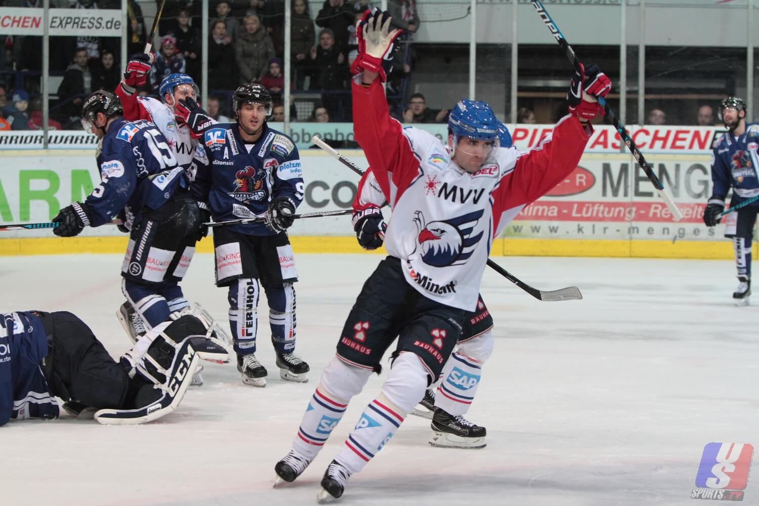 Im mittleren Spielabschnitt drehten die Adler durch Mathias Plachta das Spiel und gingen in Führung. Erst legte Chales Lingelt den Ausgleich in der 44. Spielminute hin, dann erhöhte Julian Talbot auf 2:3. Wenige Sekunden vor Spielende traf Mathias Plachta erneut ins Tor von Petri Vehanen, womit das Spiel in die Verlängerung ging. Genau 20 Sekunden nach Beginn der Overtime traf Plachta zum dritten Mal ins Tor. Somit konnten die Adler das Spiel durch die Alleingänge von Plachta für sich entscheiden.