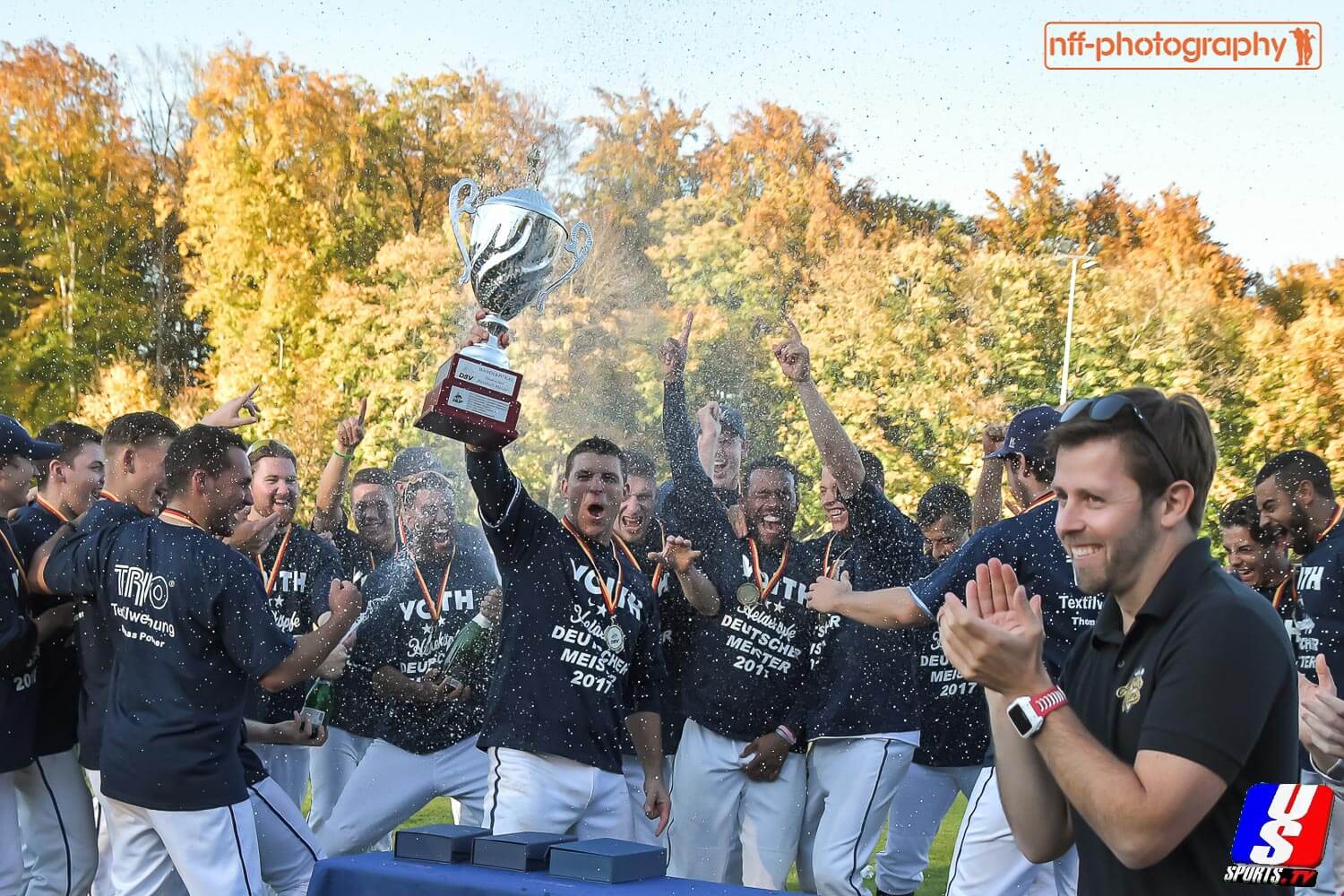 Die Heidenheim Heideköpfe sind deutscher Baseballmeister 2017. Sie bezwangen die Bonn Capitals im entscheidenden fünften Spiel der Finalserie in der 1. Baseball-Bundesliga am Samstag vor offiziell knapp 1.500 Zuschauern in Heidenheim mit 8:1.