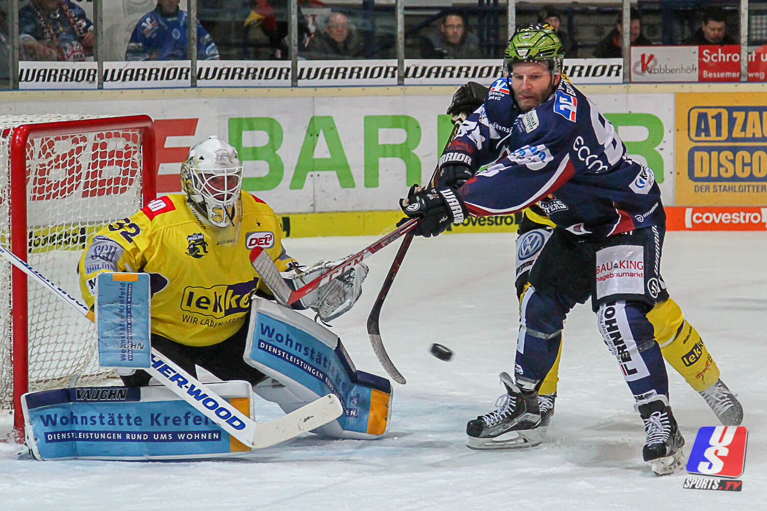 Am 45. Spieltag in der DEL haben die Iserlohn Roosters die Grenzen von den Krefeld Pinguinen aufgezeigt bekommen. Am Rhein hingegen lieferte sich die Düsseldorfer EG ein Kellerduell mit den Straubing Tigers.