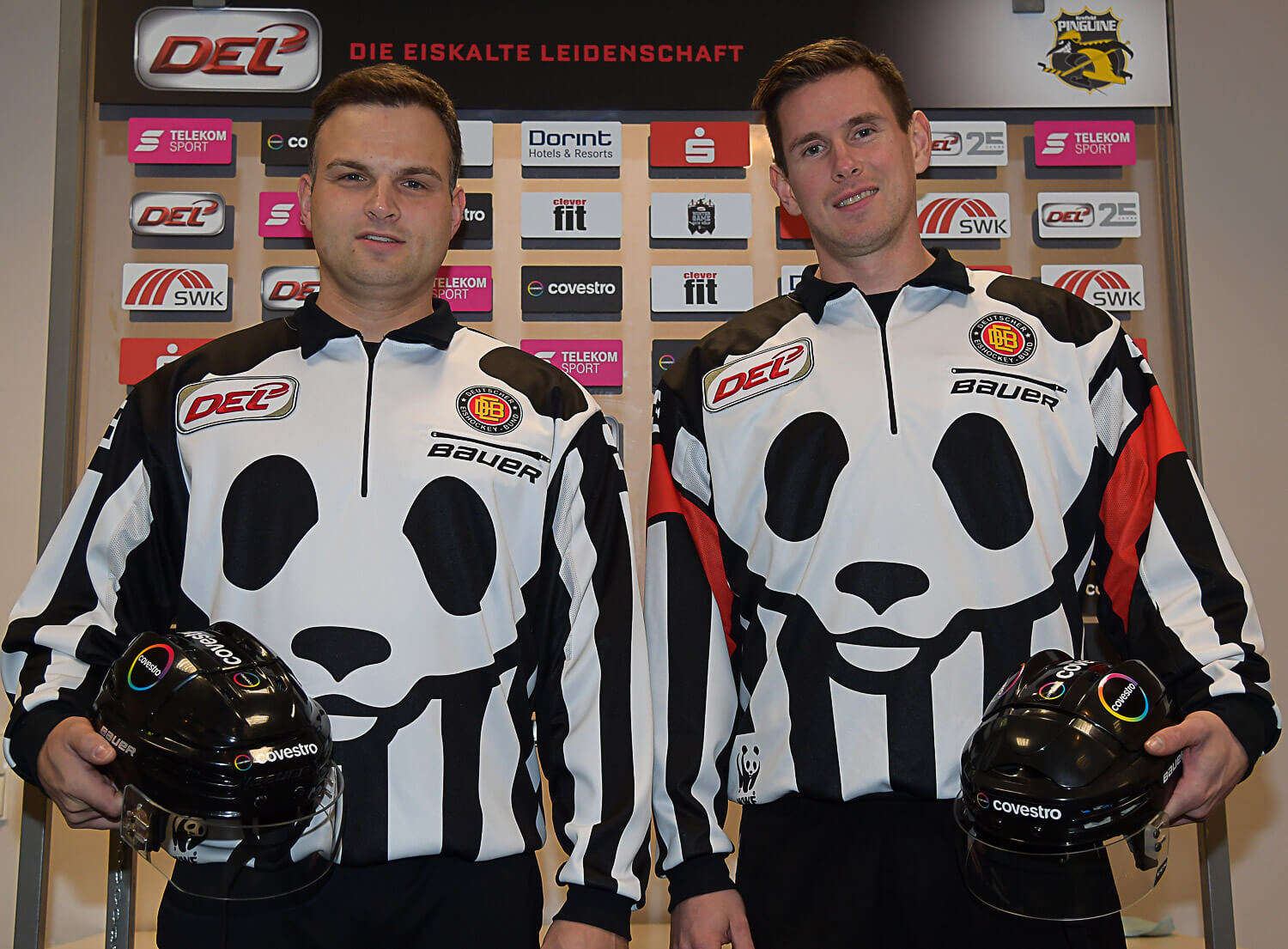 Andreas Kowert und Marc Iwert präsentieren das neue Trikot der Schiedsrichter (Foto: DEL/Christoph Jürgens)