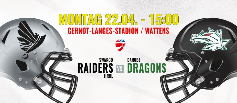 Ab 15 Uhr gibt es das American Football Spiel aus Österreich zwischen den Swarco Raiders aus Innsbruck gegen die Danube Dragons LIVE hier.
