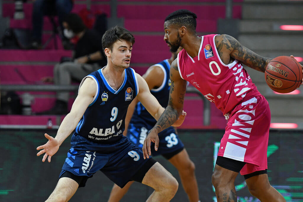 Foto : Michael Scheuermann ( Honorarpflichtig ) Basketball Bundesliga Saison 2020/2021 Telekom Baskets Bonn - Alba Berlin 75 : 80 (42:37) Telekom Dome Bonn 04.04.2021