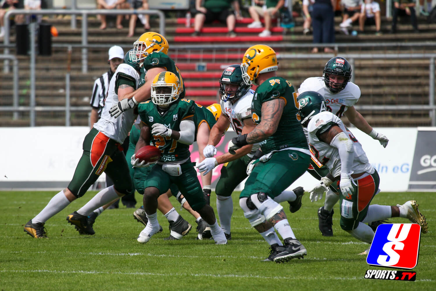 Bereits nach einer Halbzeit war die Begegnung bei sengender Hitze im Kölner Südstadion entschieden. Dabei konnte Kiel nur im ersten Viertel wirklich mithalten. Köln zeigte, wie schon am ersten Spieltag gegen Dresden, ein gutes Passplay und brachte die, zum Teil unerfahrenen Kieler mehrfach in Bedrängnis.