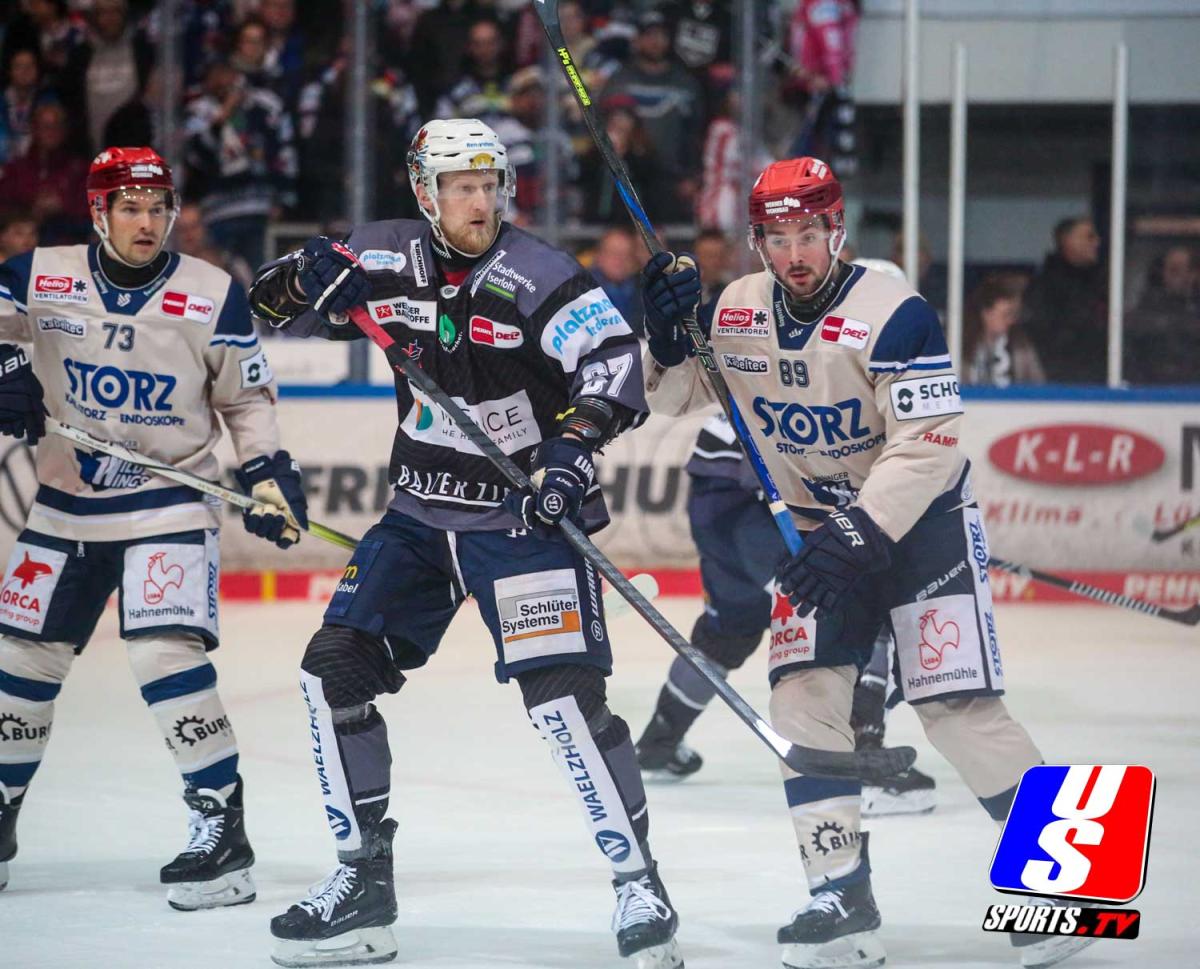 Die Roosters erwischten den besseren Start. Sie nutzen gleich ihre erste Überzahl zur Führung. Mirko Höflin saß in der Kühlbox, da traf Shane Gersich in der 5. Spielminute zum 1:0 für die Gastgeber. Und die Sauerländer setzten sehr zur Freude der eigenen Fans direkt nach. Nur 29 Sekunden nach der Führung traf Torjäger Sven Ziegler zum 2:0 für die Hausherren. Die Gäste brauchten einige Zeit, sich von diesem Doppelschlag zu erholen. Gegen Ende des ersten Spielabschnitts kamen die Wild Wings besser in die Partie, waren jetzt auf Augenhöhe mit den Roosters und hatten ihrerseits gute Tormöglichkeiten. Die Spannung wurde größer. Das Ergebnis aus Düsseldorf, die gegen Nürnberg in der Verlängerung gewonnen hatten und die zwischenzeitliche deutliche Führung der Augsburger Panther machten die Runde in der Balver-Zinn-Arena. Es ging mit der Doppelführung für die Roosters in die erste Pause.