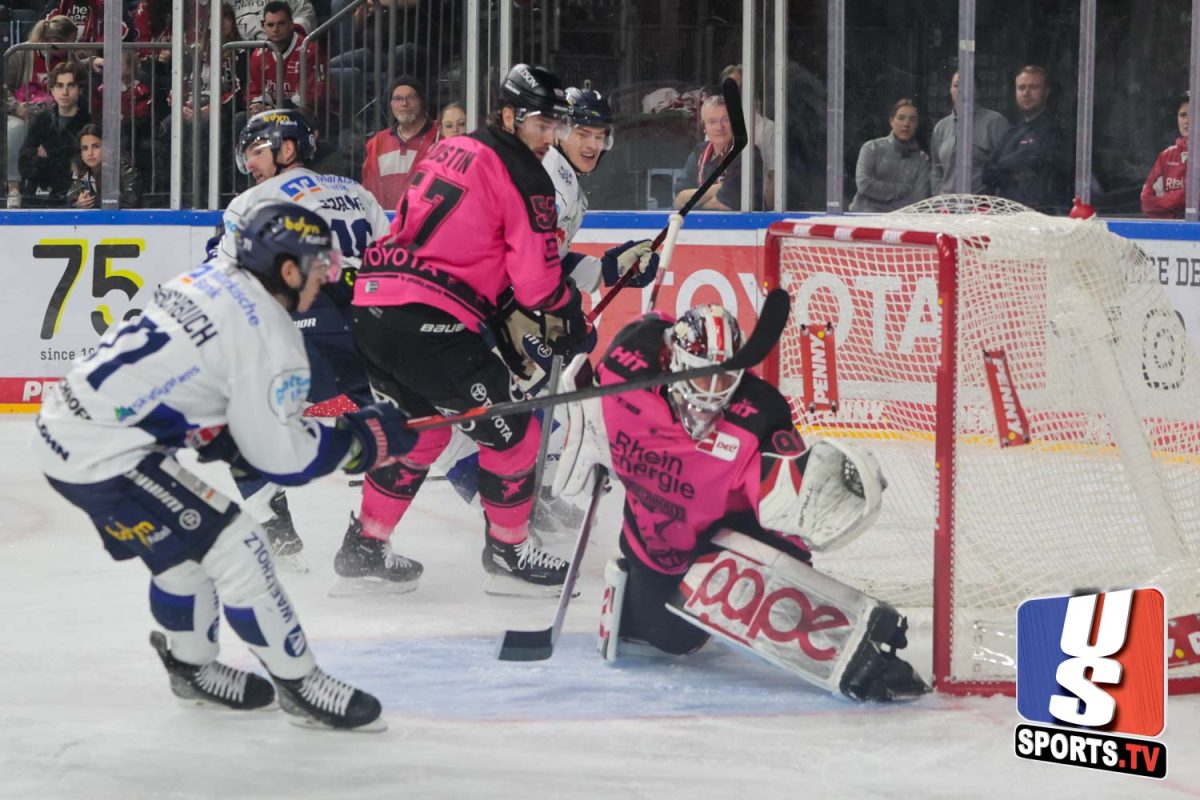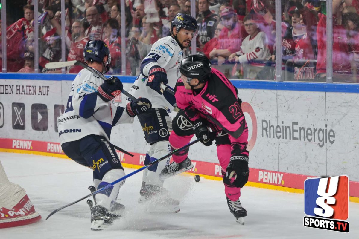 Colten Jobke erhält wenig später eine Strafe wegen Spielverzögerung, und die Haie nutzen das Powerplay sofort. Nach nur drei Sekunden gleicht Valtteri Kemiläinen in der 34. Minute zum 1:1 aus. Kurz vor der Pause bringt Dominik Bokk Köln mit seinem Treffer zum 2:1 in Führung. Im letzten Drittel halten die Roosters dagegen, können Ancicka jedoch nicht mehr überwinden. Patrick Russel besiegelt schließlich mit einem Schuss ins leere Tor den 3:1-Endstand.
