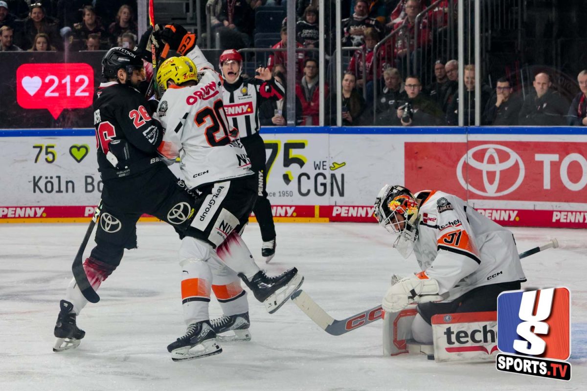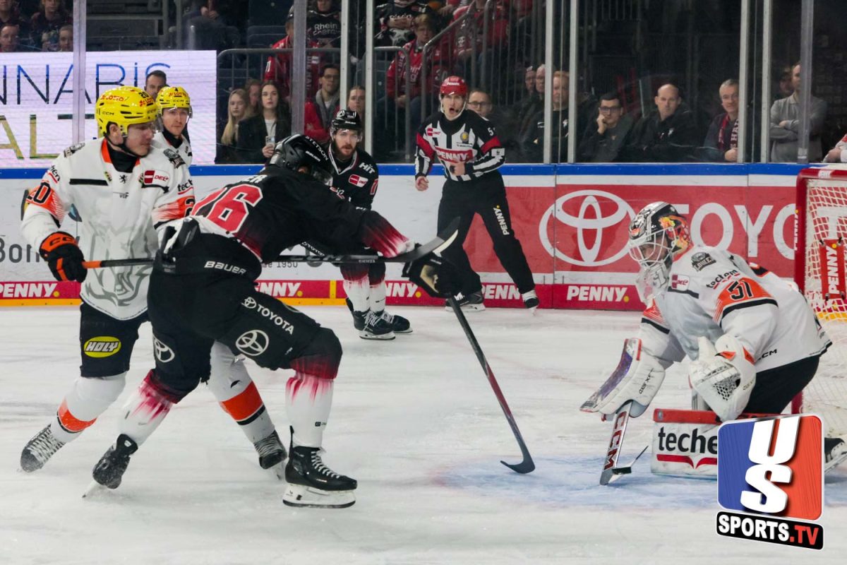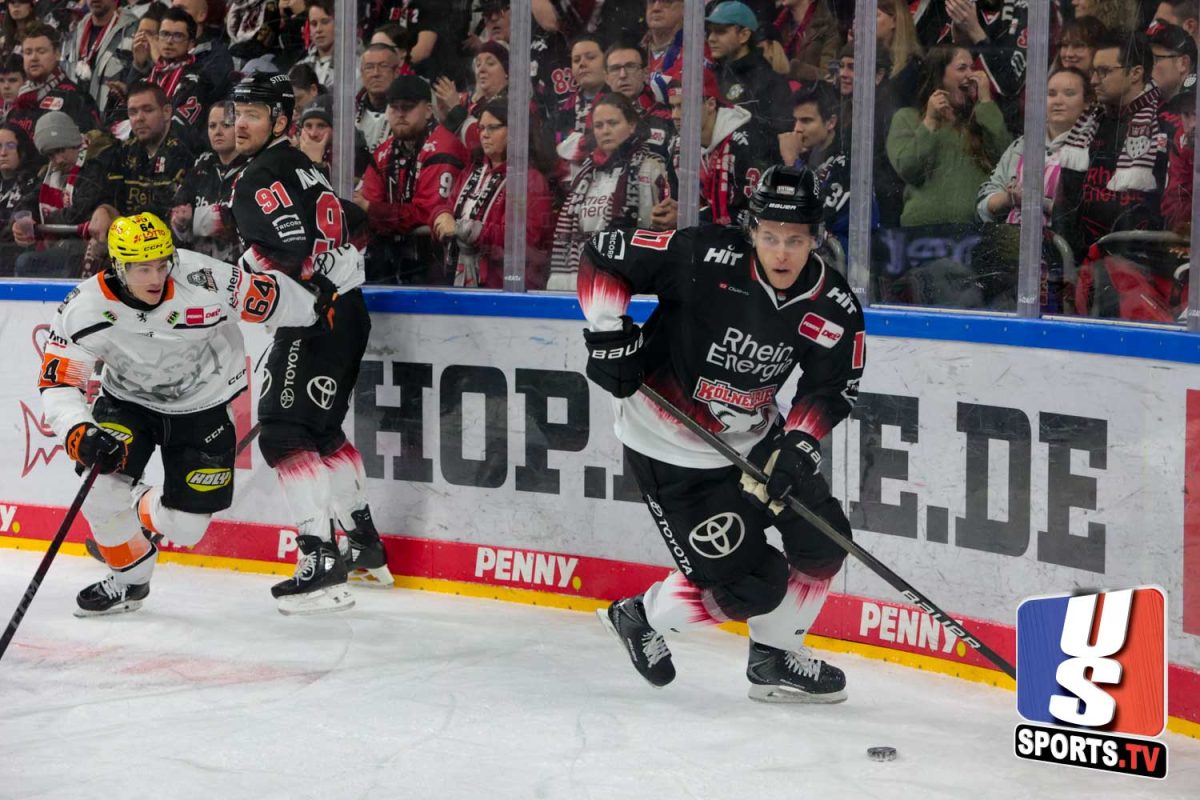 Nach dem Seitenwechsel zeigten die Haie mehr Energie und belohnten sich in der 33. Minute. Gregor MacLeod fing einen Puck ab, zog entschlossen zum Tor und traf mit einem Schuss von der Linie zur 1:0-Führung. Löwen-Keeper Cody Brenner war dabei chancenlos. Köln schien nun besser im Spiel zu sein.